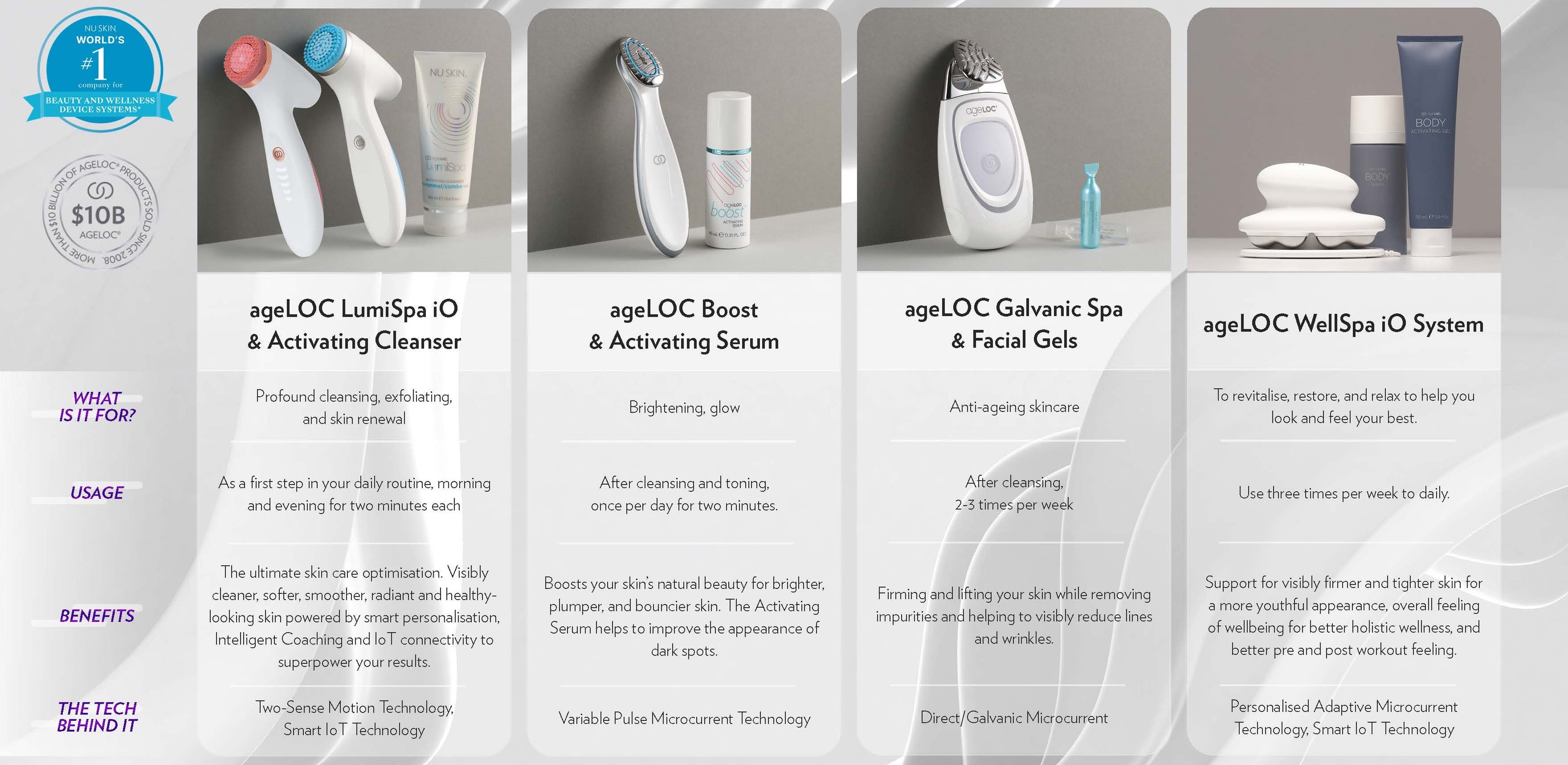 Welcome to the future of self-care! The WellSpa iO boasts ageLOC cosmetic products that deliver scientifically proven benefits you can feel and see, an IoT-connected app that serves as a guiding companion and a personalised adaptive microcurrent technology integrated in the device. Input smart self-care and output visibly firmer and tighter skin for a more youthful, vibrant appearance with the WellSpa iO!